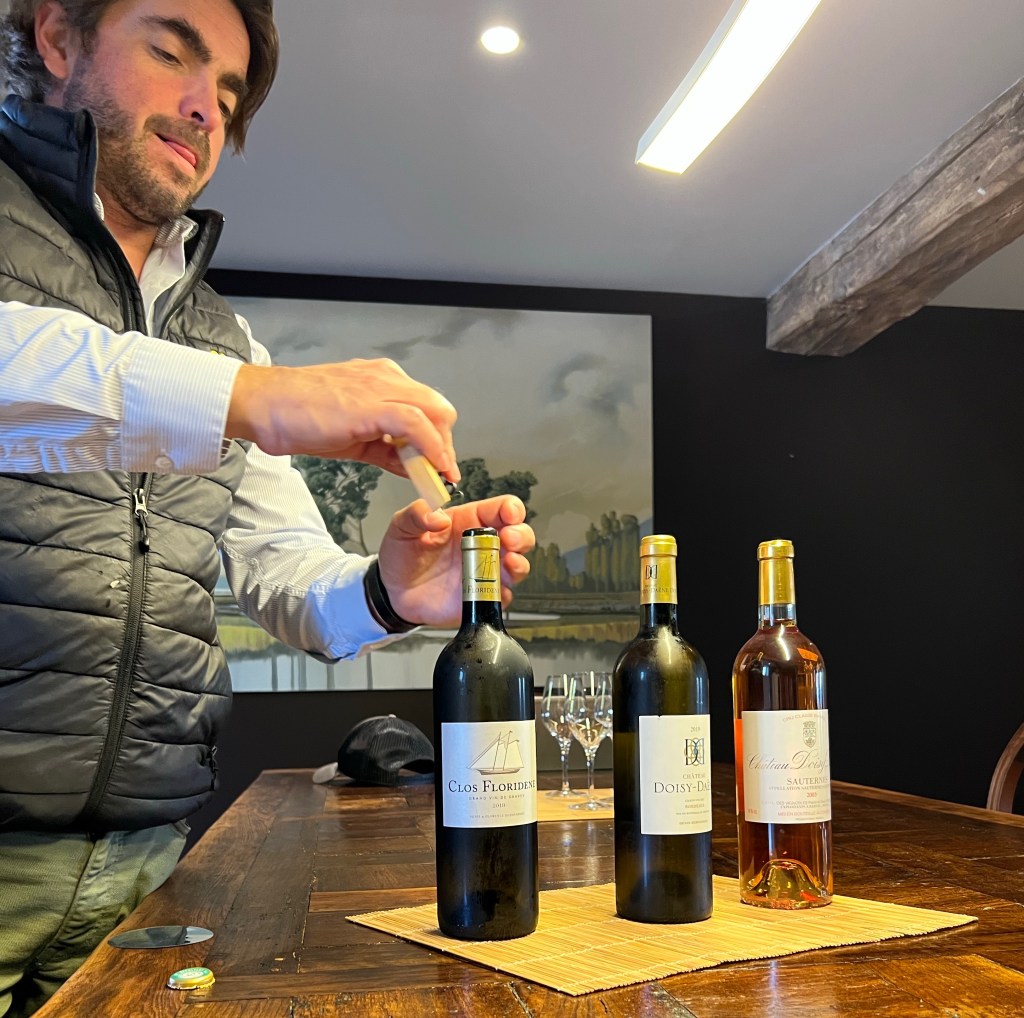 OK, on to the tasting. The first was a dry white from Clos Floridene which is a winery they operate just a few miles away. It was as good as I remember, crisp, citrusy and minerally. We moved onto a variety of sweet Sauternes and Barsac Wines, and altogether he spent well over an hour with us, which included a couple of short breaks for phone calls from his vineyard manager. Keep in mind, the harvest of the sweet grapes had just began that Monday, and was going on for another week or so. So this is an active period for them and it was extremely gracious for him to spend so much time with us.
