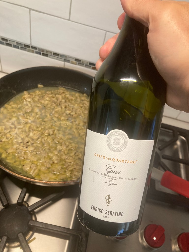#2: Grifo del Quartaro, 2020 GAVI. I LOVE Gavi! It’s a minerally, yet fruit friendly, very dry, medium-light white wine, but this one is of high quality, with a lingering finish. Light golden color with a bit of effervescence makes it super refreshing and pleasant! High acidity, perfect with seafood …I’m thinking pasta with clams (duh), but also raw fish, ceviche, other white fish. Or just by itself. With me, of course.
